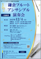 2025年12月4日(木)、鎌倉生涯学習センターにてフルート演奏会を開催します。→詳しくはこちら
